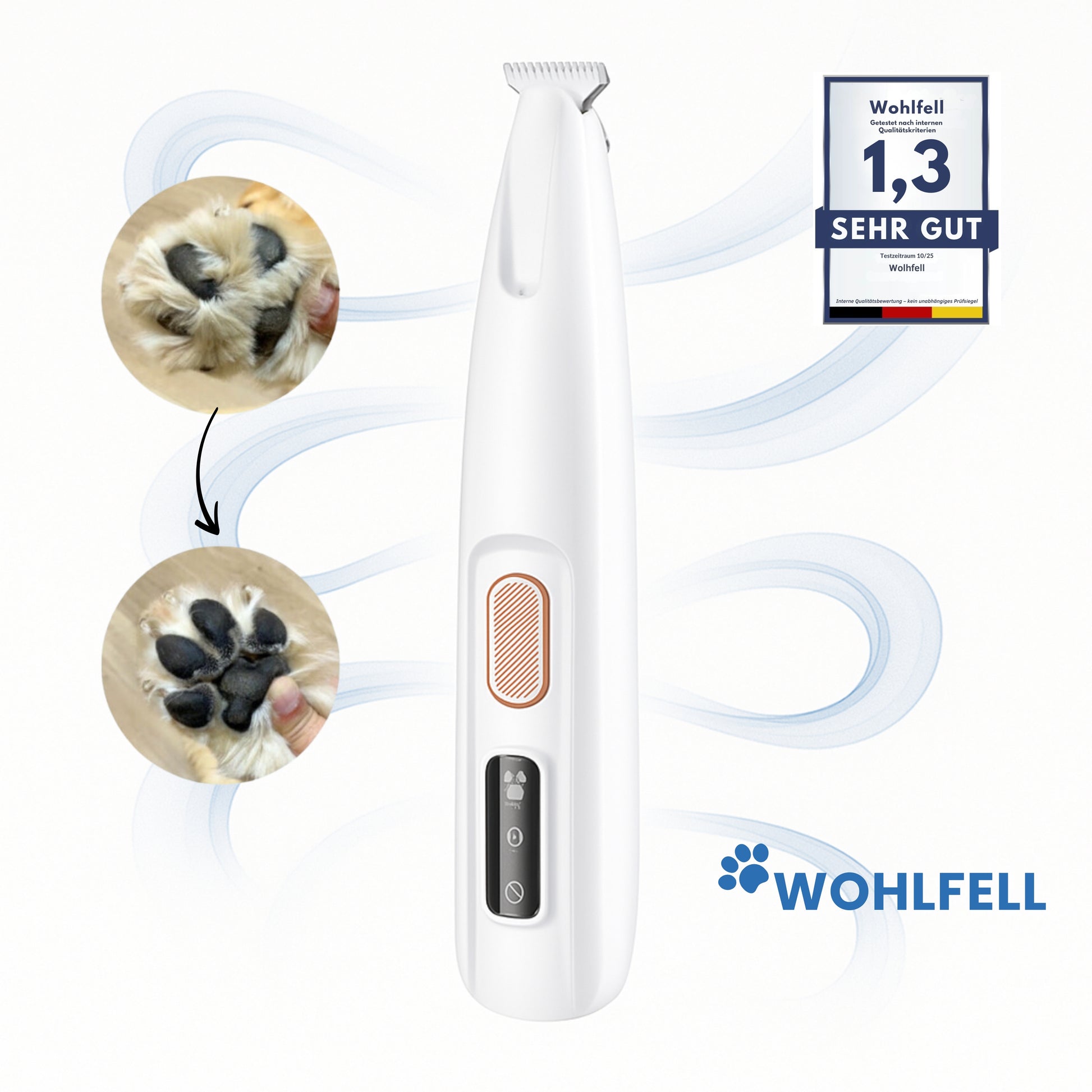 Luisa S. Apr 2025Verified BuyerKeine rutschigen Pfoten mehr!Mein Cavalier-Pudel-Mix hat immer extrem schnell wachsende Haare zwischen den Ballen. Früher ist er ständig weggerutscht. Mit diesem Trimmer sind die Pfoten in 2 Minuten sauber, er ist leise und mein Hund bleibt total entspannt. ☺️PawCare Pro™ - Pfotenpflege Was this helpful? 19 0